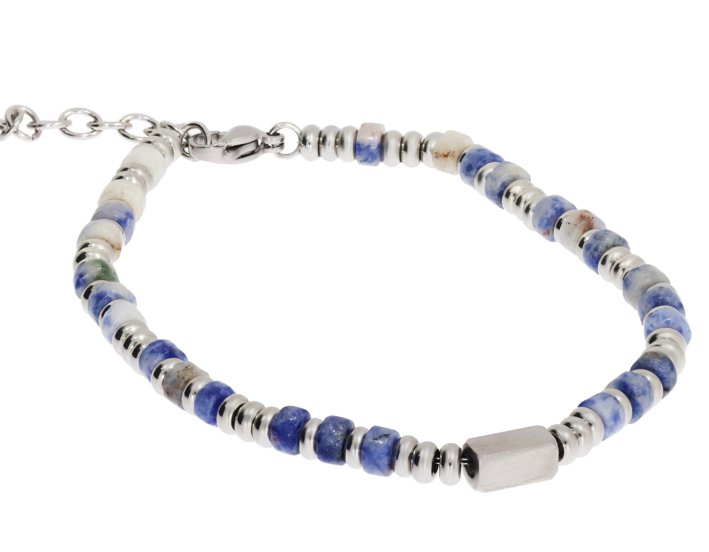 Erkek Mavi Renk Doğal Taş Çelik Detay Bileklik (ST02001)