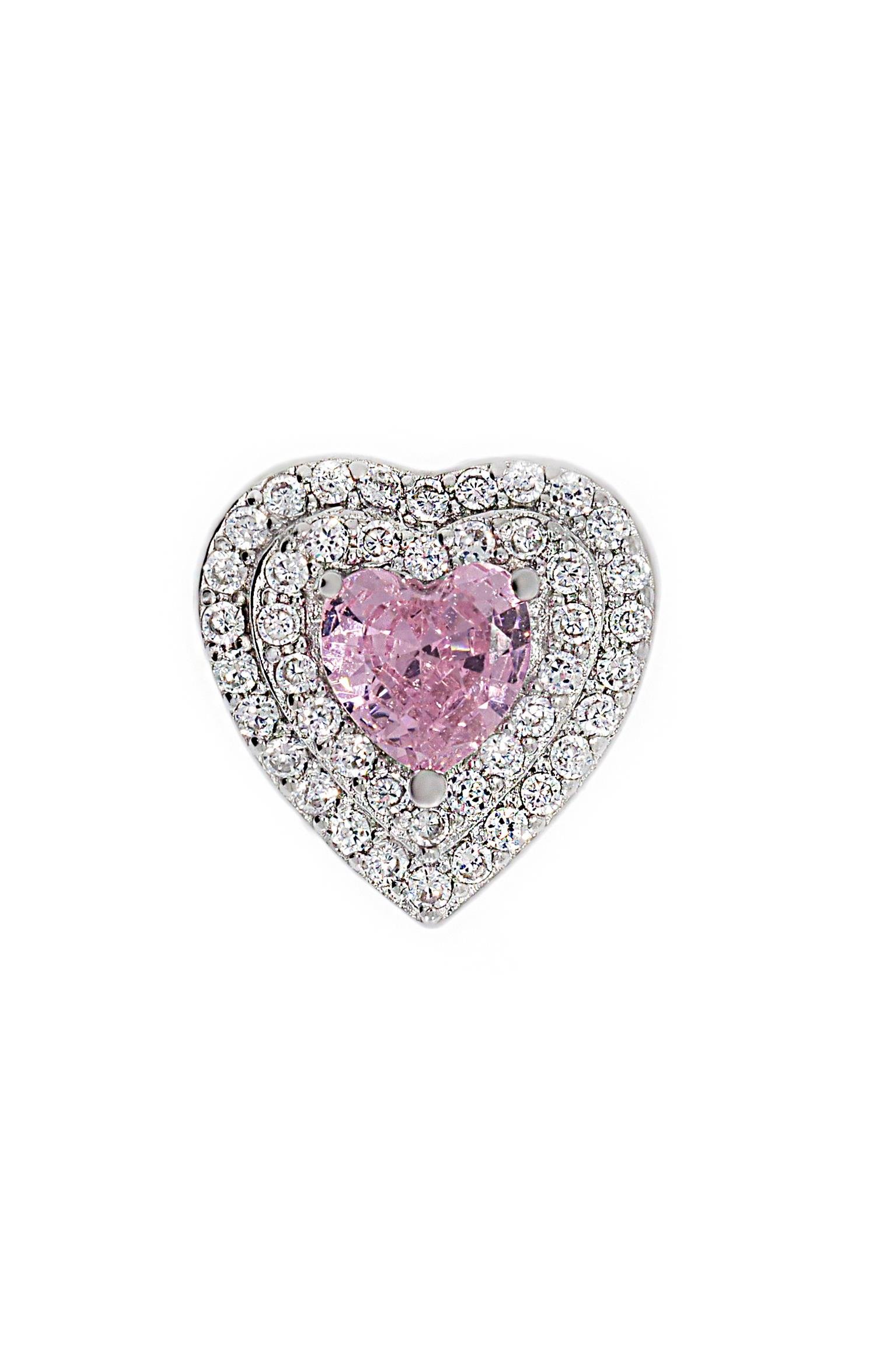 Kadın Kalp Model İki Sıra Taş ve Pembe Taş Detay Gümüş Charm (ST01945)