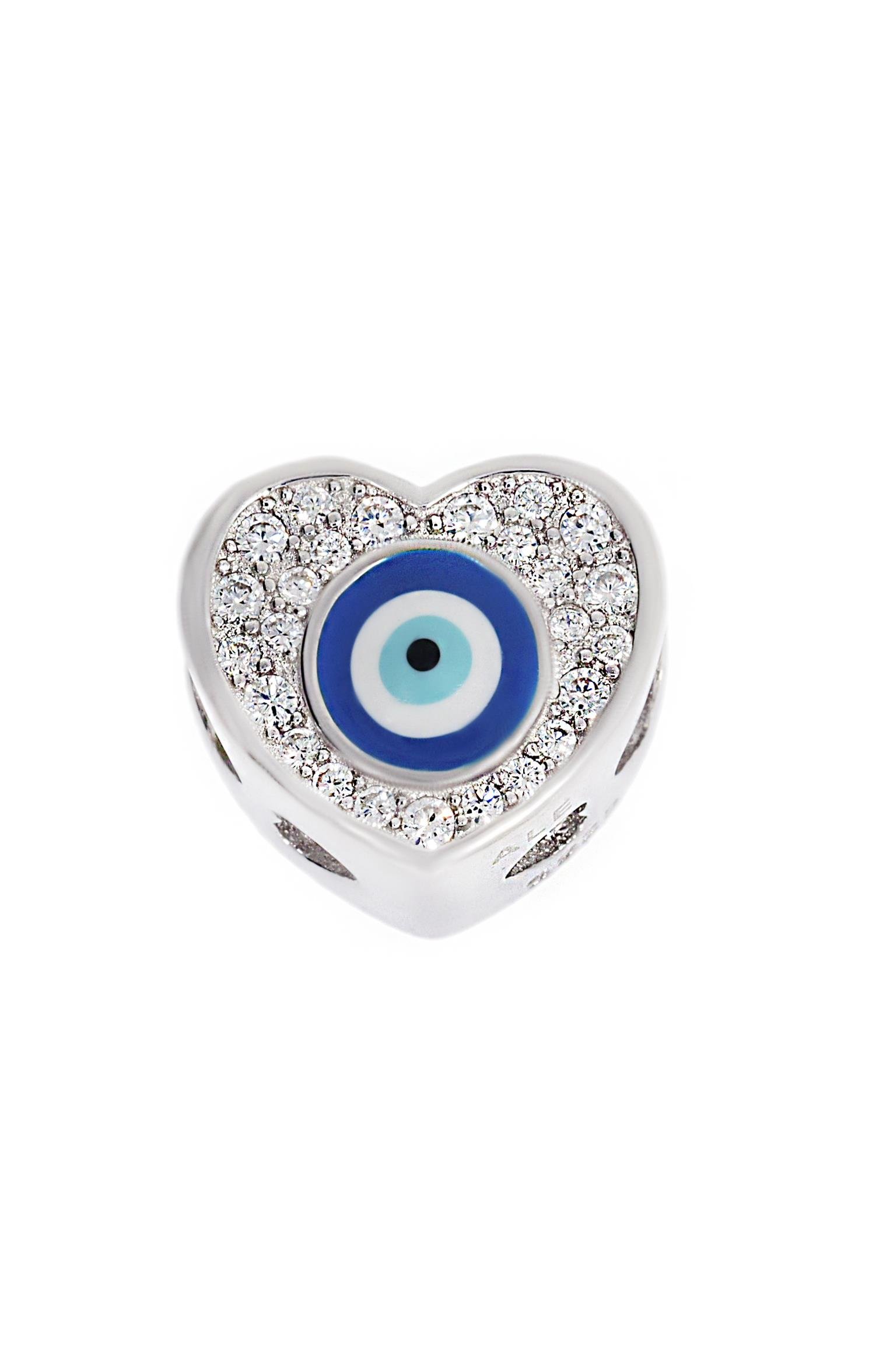 Kadın Kalp Model Nazar Boncuğu Detay Taşlı Gümüş Charm (ST02023)