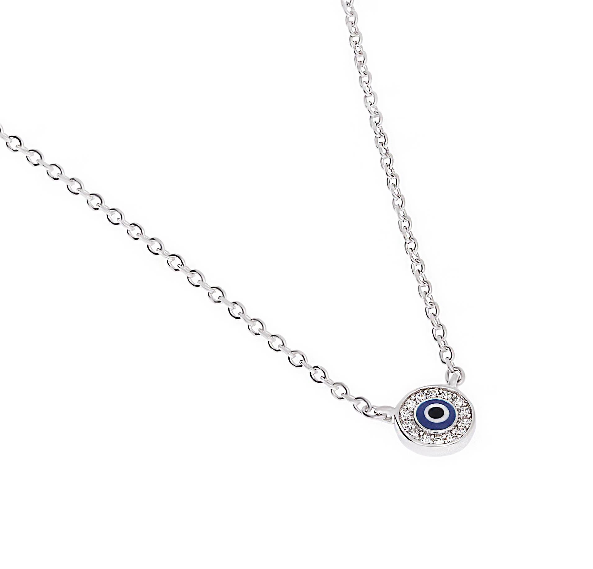 Kadın Nazar Boncuğu Detay Yuvarlak Taşlı Gümüş Kolye (ST01965)