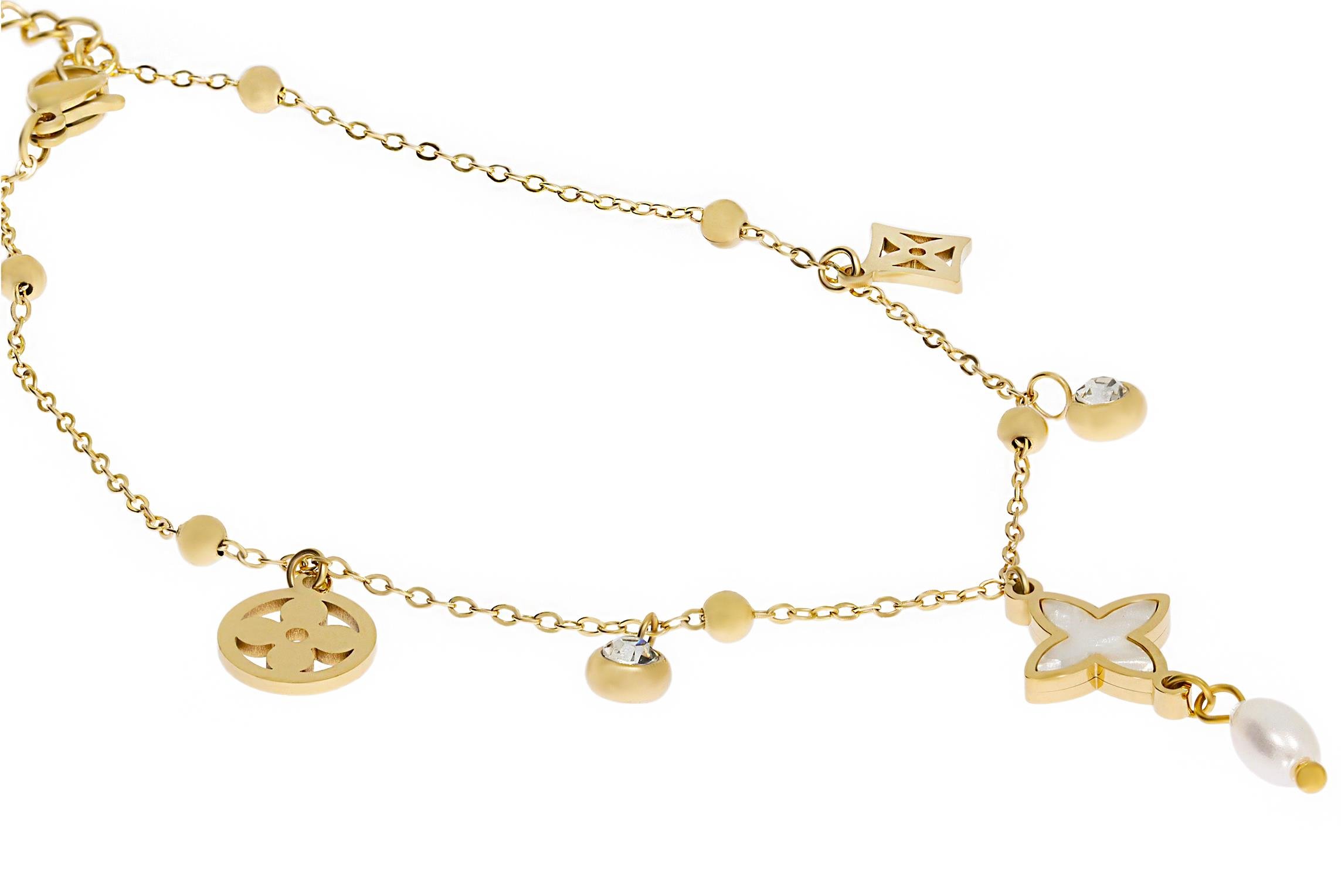 Kadın Sallanan Çiçekler ve Tektaş Model Gold Renk Çelik Halhal (ST01989)