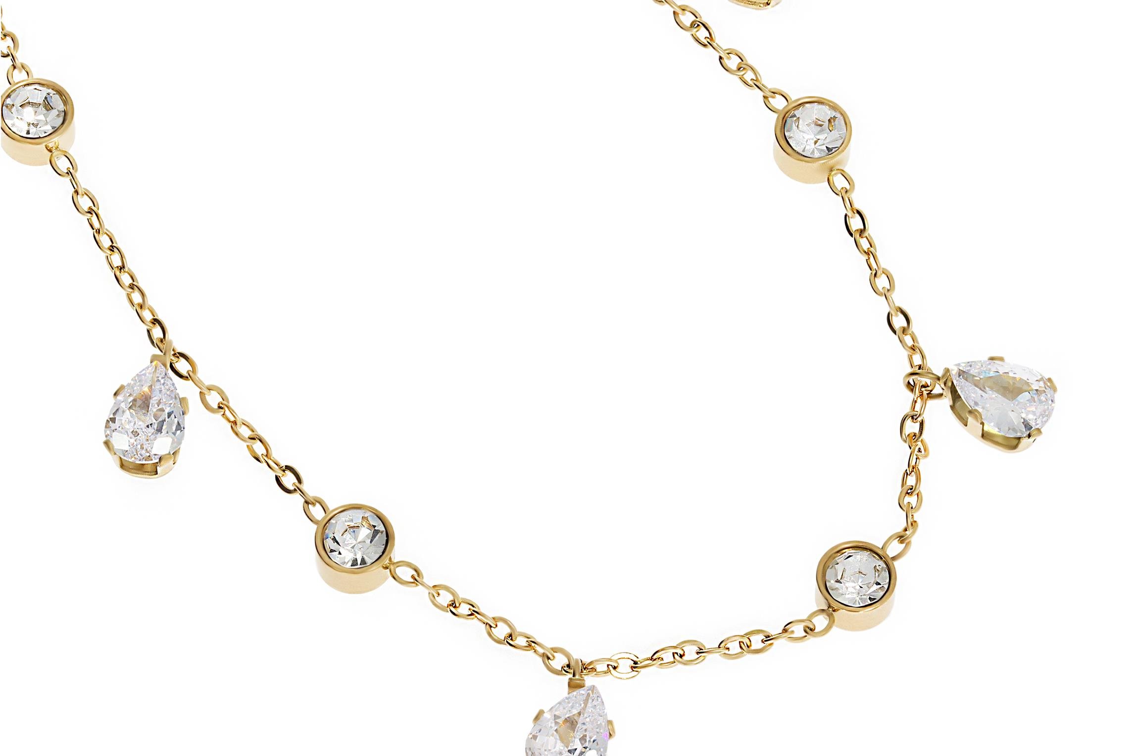 Kadın Sıralı Damla ve Yuvarlak Taş Detay Gold Renk Çelik Halhal (ST01939)