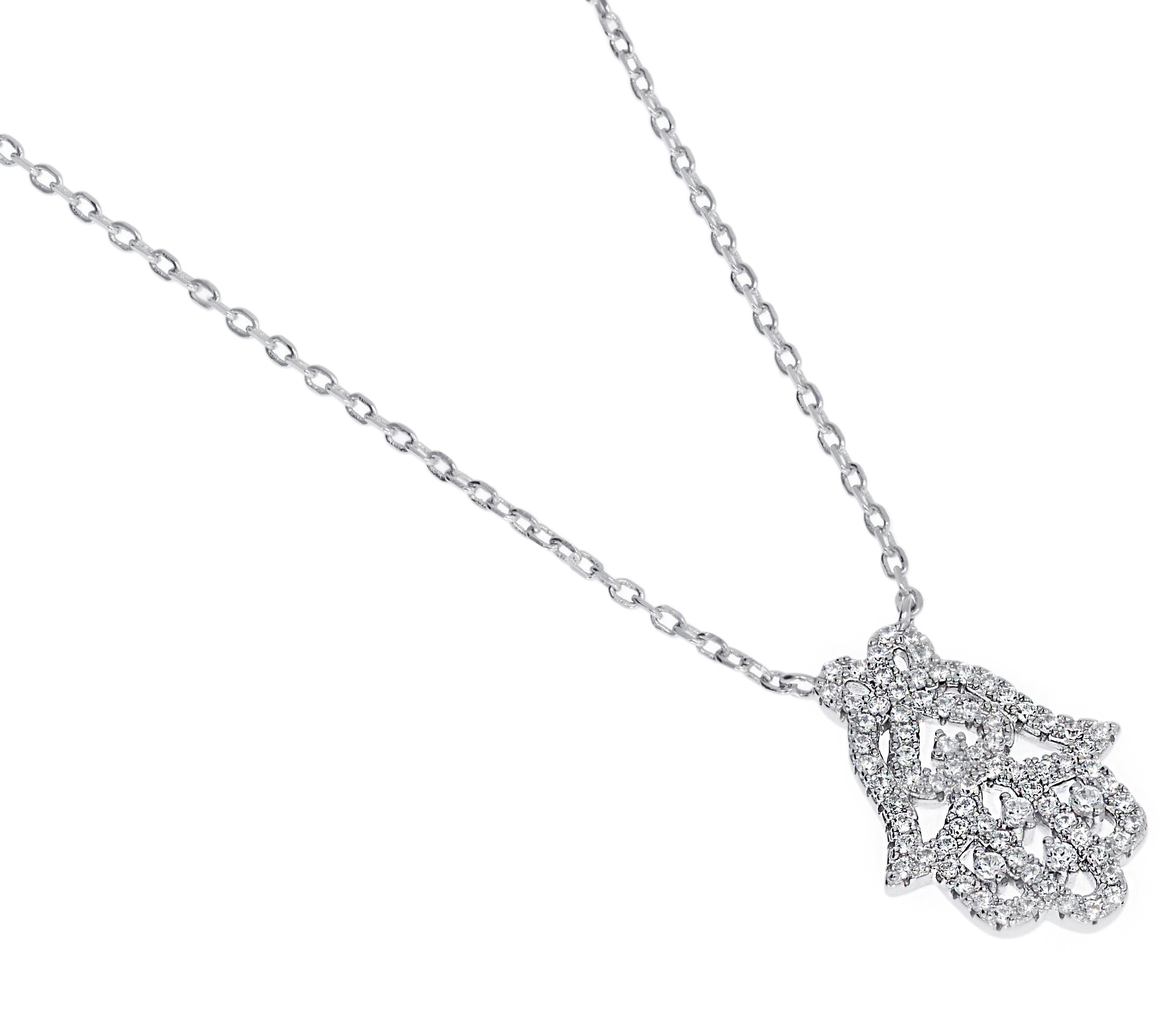 Kadın Taşlı Fatma Ana Eli Model Gümüş Kolye (ST01996)
