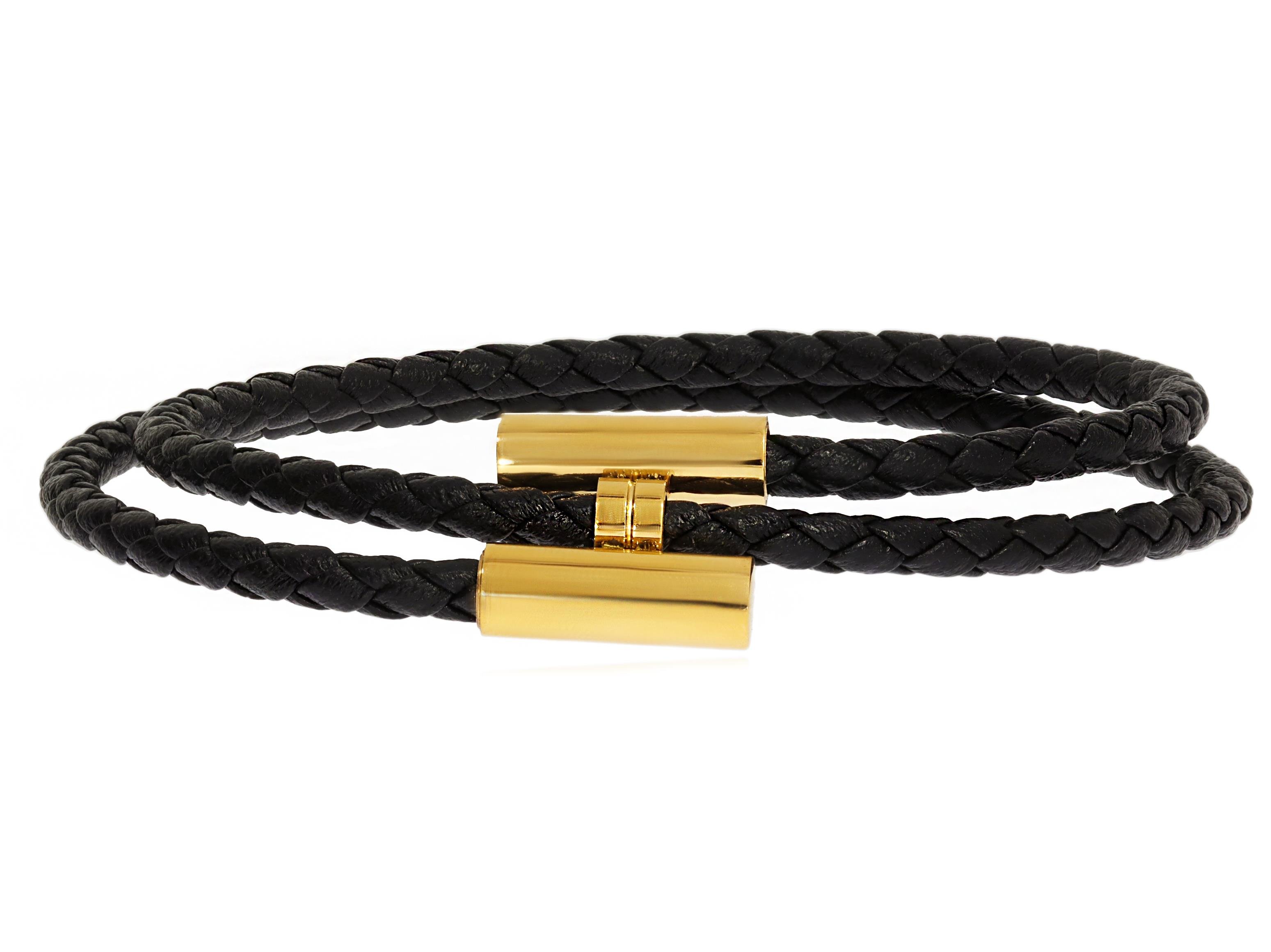 Unisex Siyah Renk Sarmal Deri Bileklik
